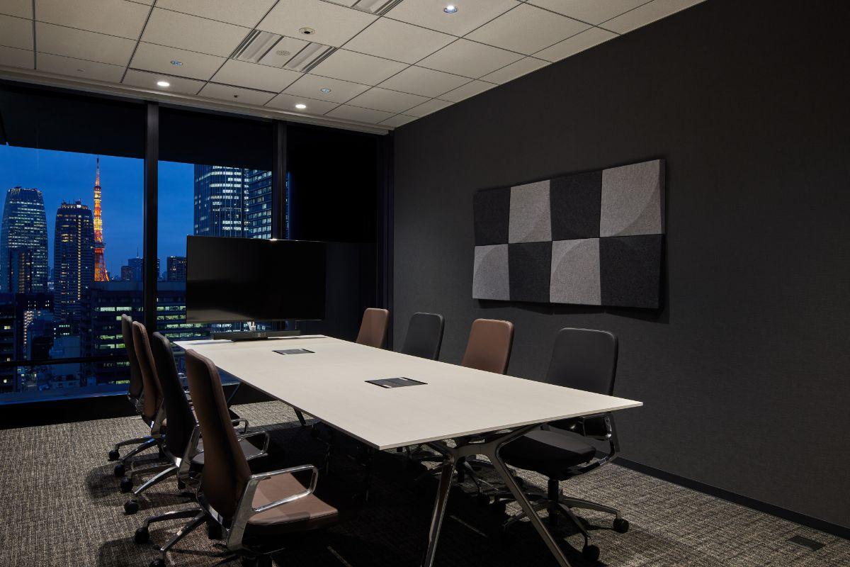 窓からはビル街を一望でき、昼と夜では会議室の雰囲気が大きく変わります。
