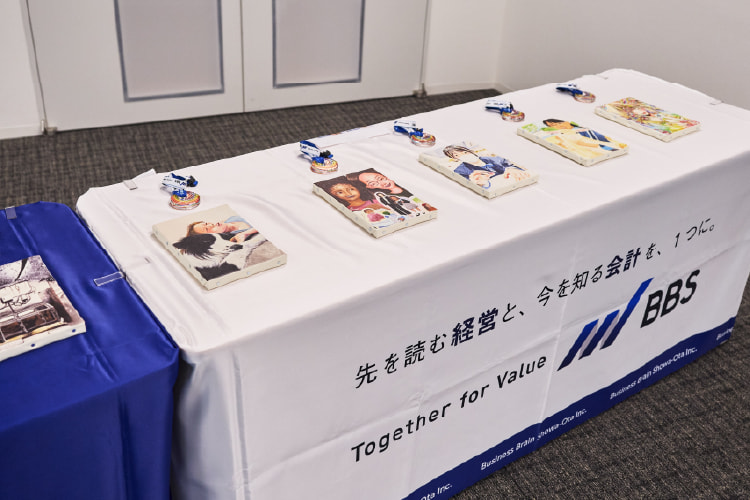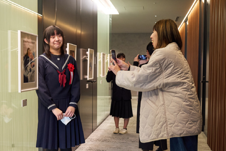 会議室エリアには実際の受賞作品を展示。作品それぞれの、力強いタッチや繊細な表現に感嘆の声を上げていました。クリスマスを模したこの日限りの特別フォトスポットもセレモニーを彩り、皆さまの「幸せな時間」が輝く特別なひとときとなりました。