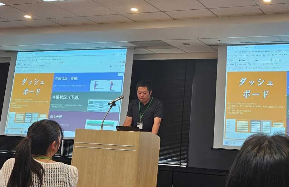 机上審査によりファイナリスト11組に選出され、最終プレゼンテーションでは、各ファイナリストが約60名のQlik開発者・ユーザー、メンバーの前で7分間の発表を行います。参加者による投票の結果、BBSの島嵜がパートナー部門 優秀賞を受賞しました。